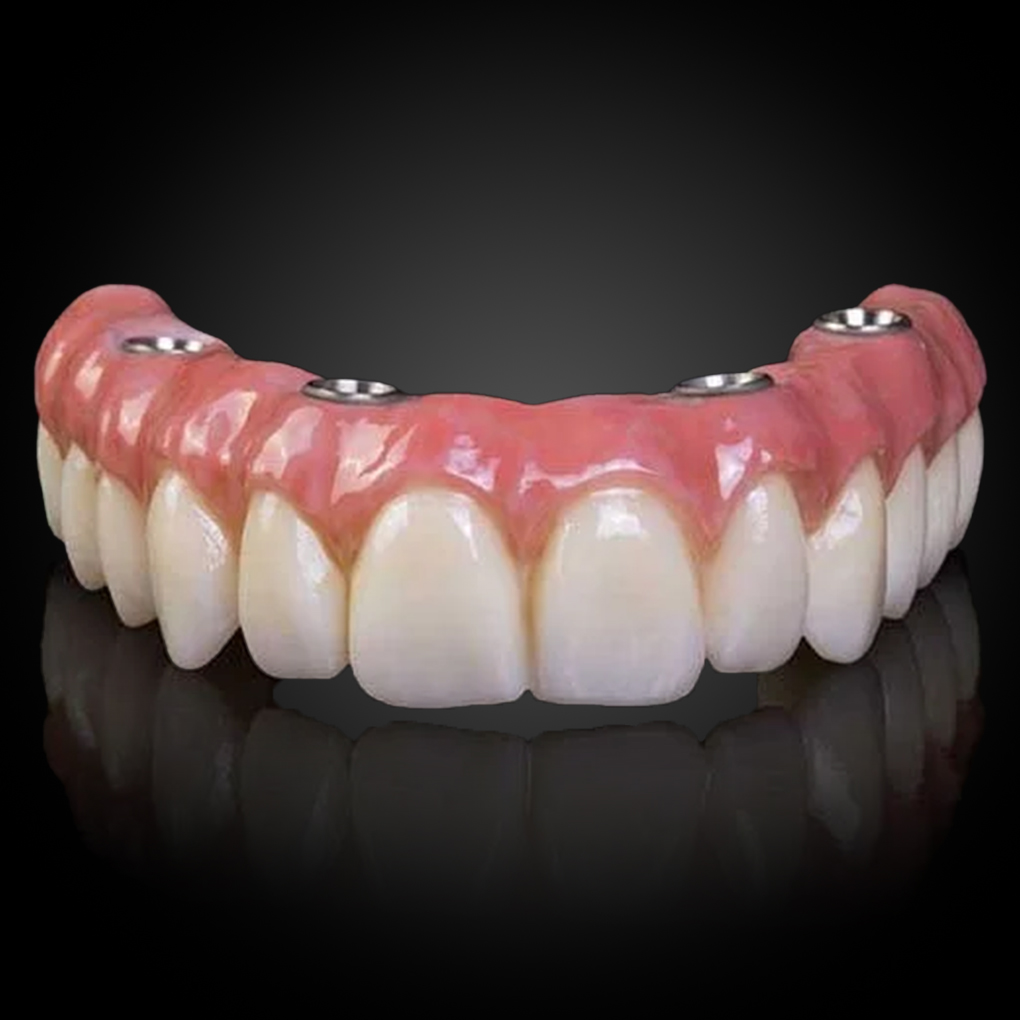 The Implant-Retained Hybrid Dentures is a type of prosthesis securely attached to implant abutments through a specialized connection system. This design enhances stability, chewing efficiency, and comfort for the wearer. The product combines the convenience of traditional removable dentures with the strength of fixed implant restorations.